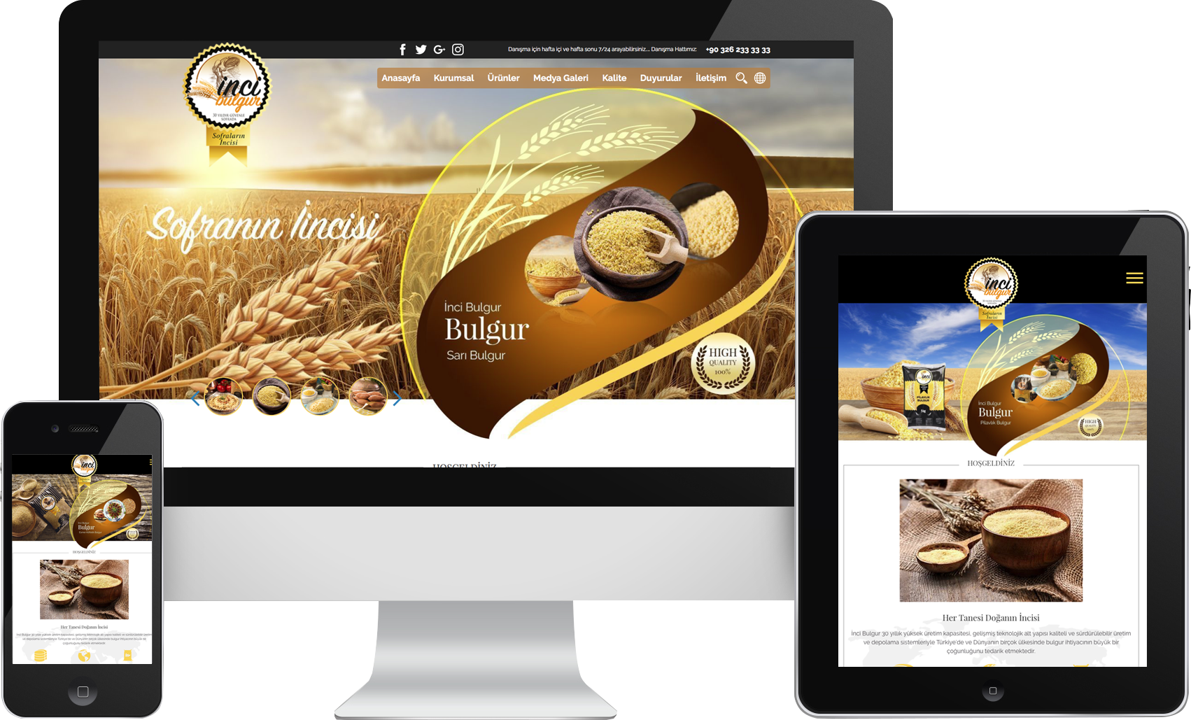 İnci Bulgur 30 yıllık yüksek üretim kapasitesi, gelişmiş teknolojik alt yapısı kaliteli ve sürdürülebilir üretim ve depolama sistemleriyle Türkiye’de ve Dünyanın birçok ülkesinde bulgur ihtiyacının büyük bir çoğunluğunu tedarik etmektedir. Çevreye dost, atık üretmeyen otomasyon sistemi ile donatılmış tesislerinde geleceğin ve doğanın korunması için her türlü tedbiri ve denetimi alarak üretim yapmaktadır. Sektörde kalite çıtasını her gün daha da yükseltme hedefi olan firmamız, iş ortaklarının memnuniyeti odaklı çalışma prensibi ile kaliteli doğal ve sağlıklı üretim misyonu ile hizmet vermektedir. Lezzetli sofraların İncisi markamız İnci Bulgur lezzeti ve özenle seçilmiş doğal ve leziz bulgur çeşitleri ile Türk Gıda Kodeksi, TSE ve ISO belgeleriyle kalitesini belgelemiştir.