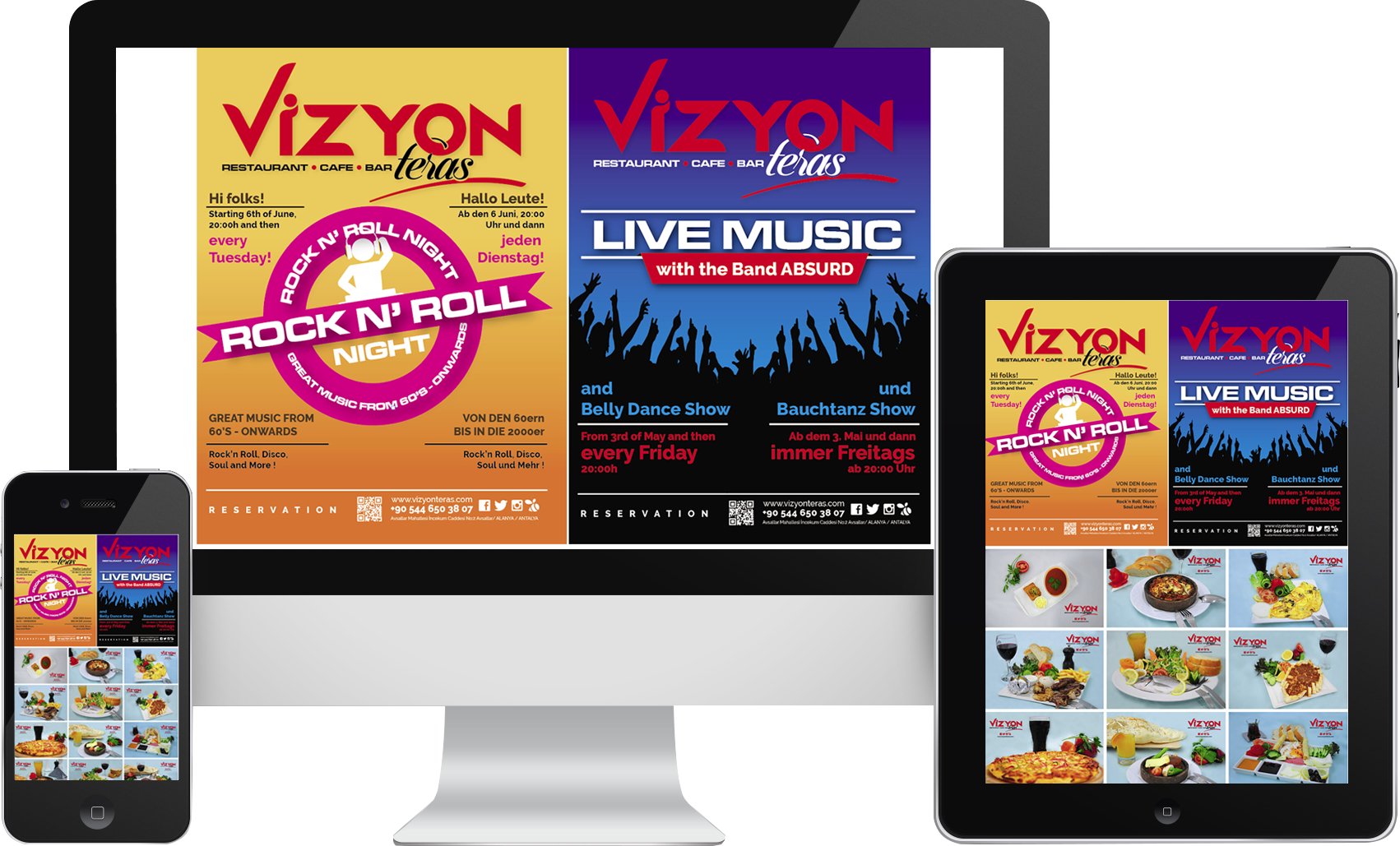 Akdeniz mutfağının eşsiz lezzetlerini mutfağında harmanlayan Vizyonteras modern ve şık mimarisi ile müşterilerinin hoşca güzel ve kaliteli zamanlar geçermesine öncülük etmektedir. Bölgesinde hijyenik, kaliteli ve ekonomik olma yolunda kısa bir zamanda lider bir kuruluş haline gelmeyi başarmıştır. Her hafta canlı müzik, doğum günü partileri, özel aktivilerle sizleri bekliyor..